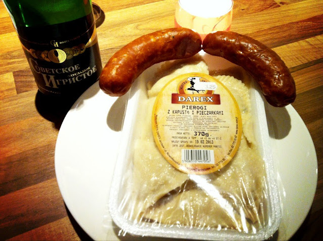A few weeks ago I found a Polish grocery store in our town. It had all your staples: pierogi, kielbasa, goomkie, Żywiec, and even Polish sparking wine! What better way to treat my Polish Princess on Valentine's day than with some Polish delicacies. Nothing says I love you like (some one else's) home made pierogis right?